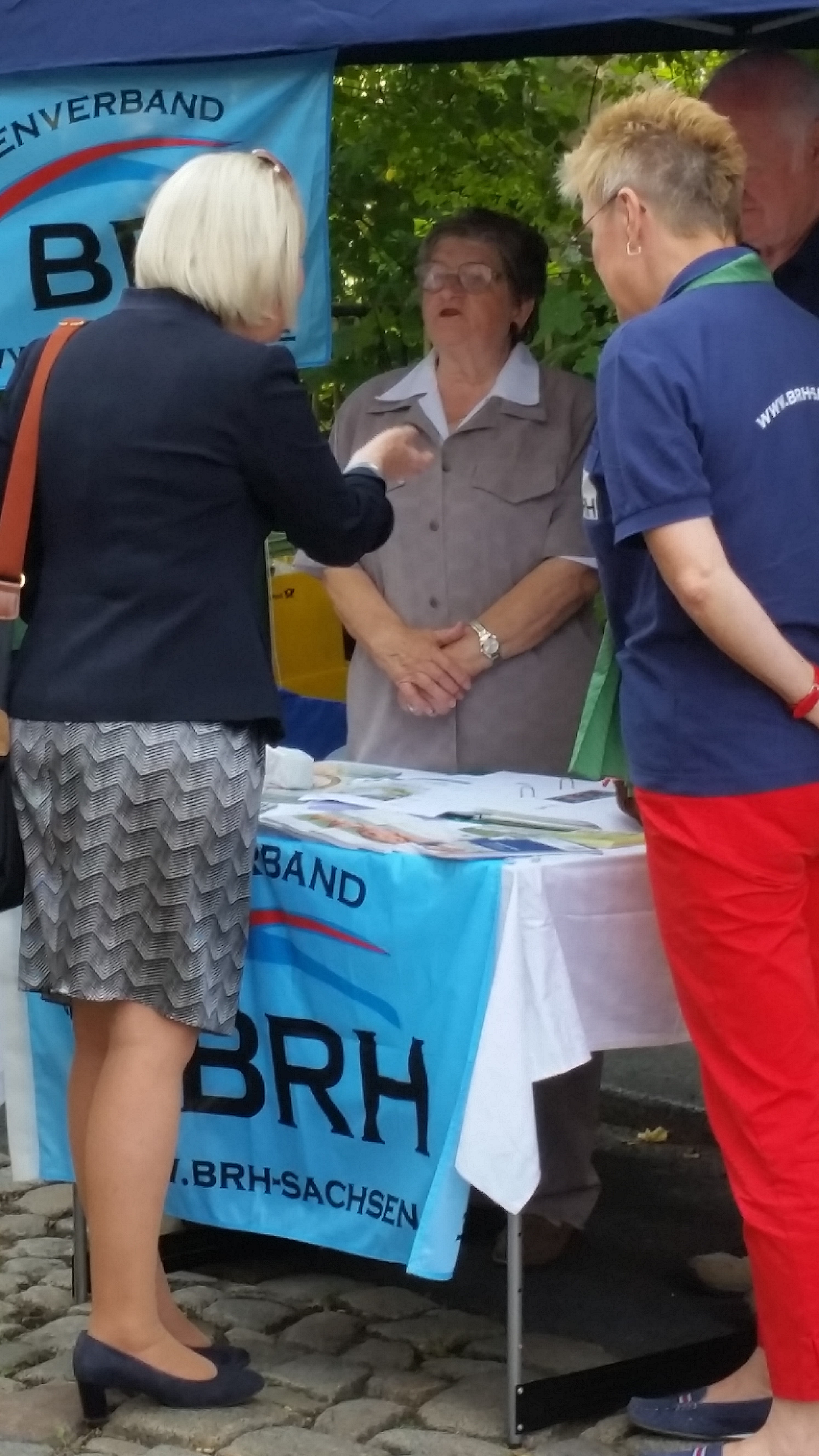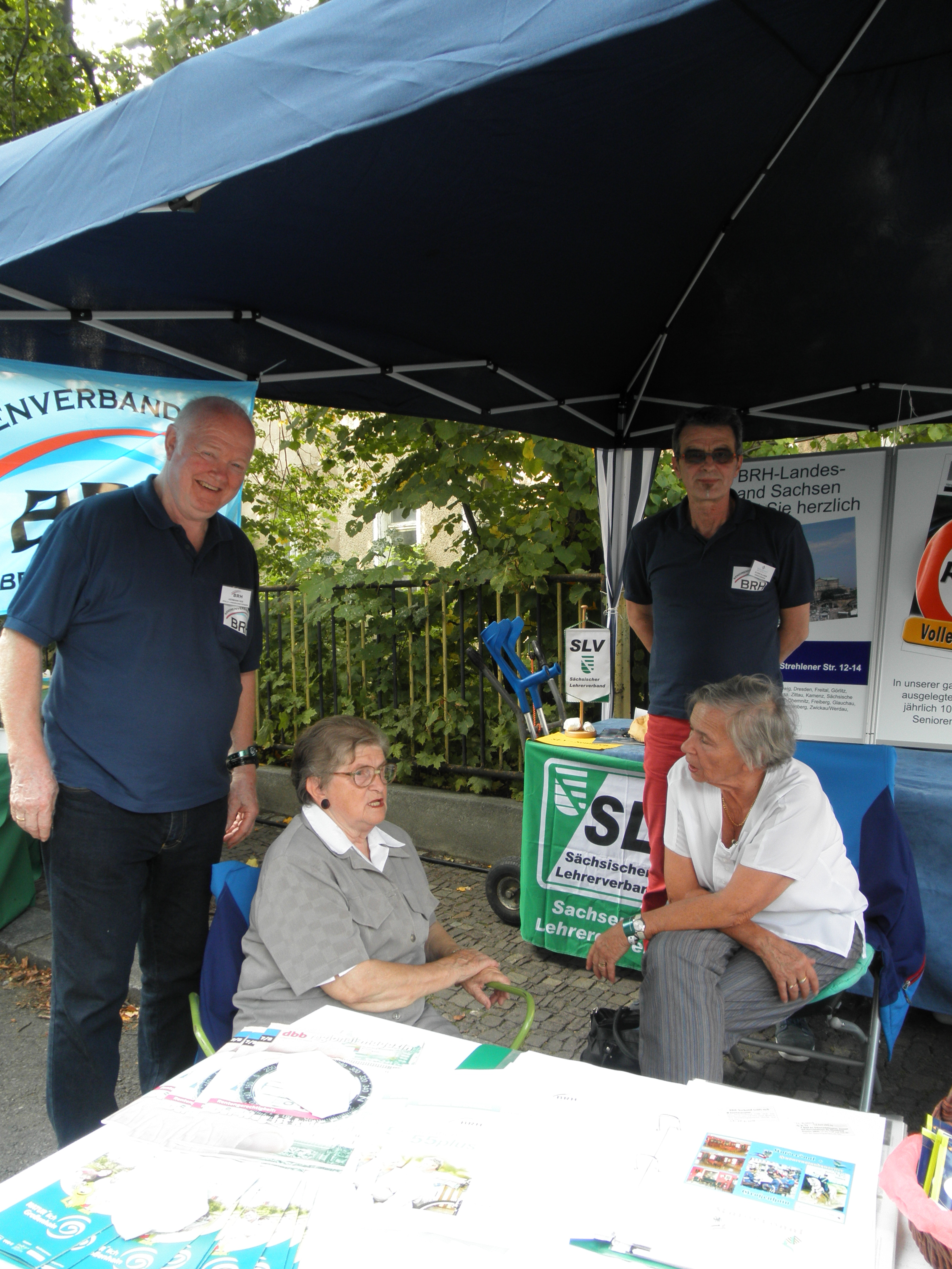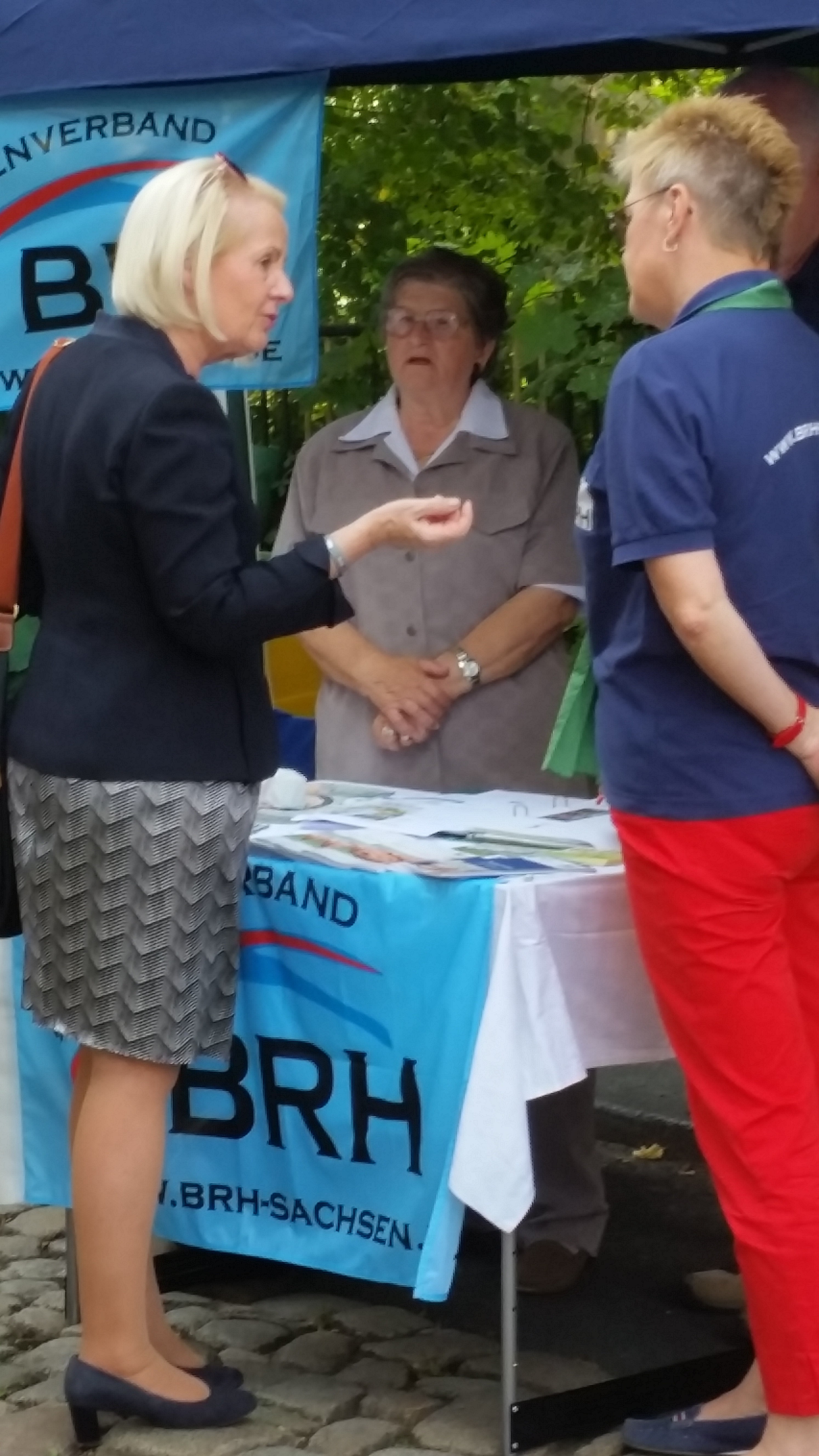 Der 23.Tag der Sachsen war für den BRH- Kreisverband Großenhain ein Höhepunkt im Veranstaltungsjahr des Vereins. Die Vorsitzende Waltraut Jäger und die Mitglieder des Geschäftsführenden Vorstandes begrüßten zahlreiche interessierte Seniorinnen und Senioren am Stand des BRH. Große Erwartungen setzten die Standbetreuer immer in den Besuch von Politikern. Zwar wurde in Sachsen gerade erst gewählt und die “alten“ Abgeordneten sind noch mit den politischen Aufgaben betraut, aber die „alten“ sind häufig auch die „neuen“ im Sächsischen Landtag. Wir konnten Gespräche führen mit der Sozialministerin Christine Clauß(CDU), mit Martin Dulig(SPD) und Horst Wehner (DIE LINKE). Unsere Themen sind bekannt und wir mahnen zu den noch offenen Fragen Stellung zu beziehen.