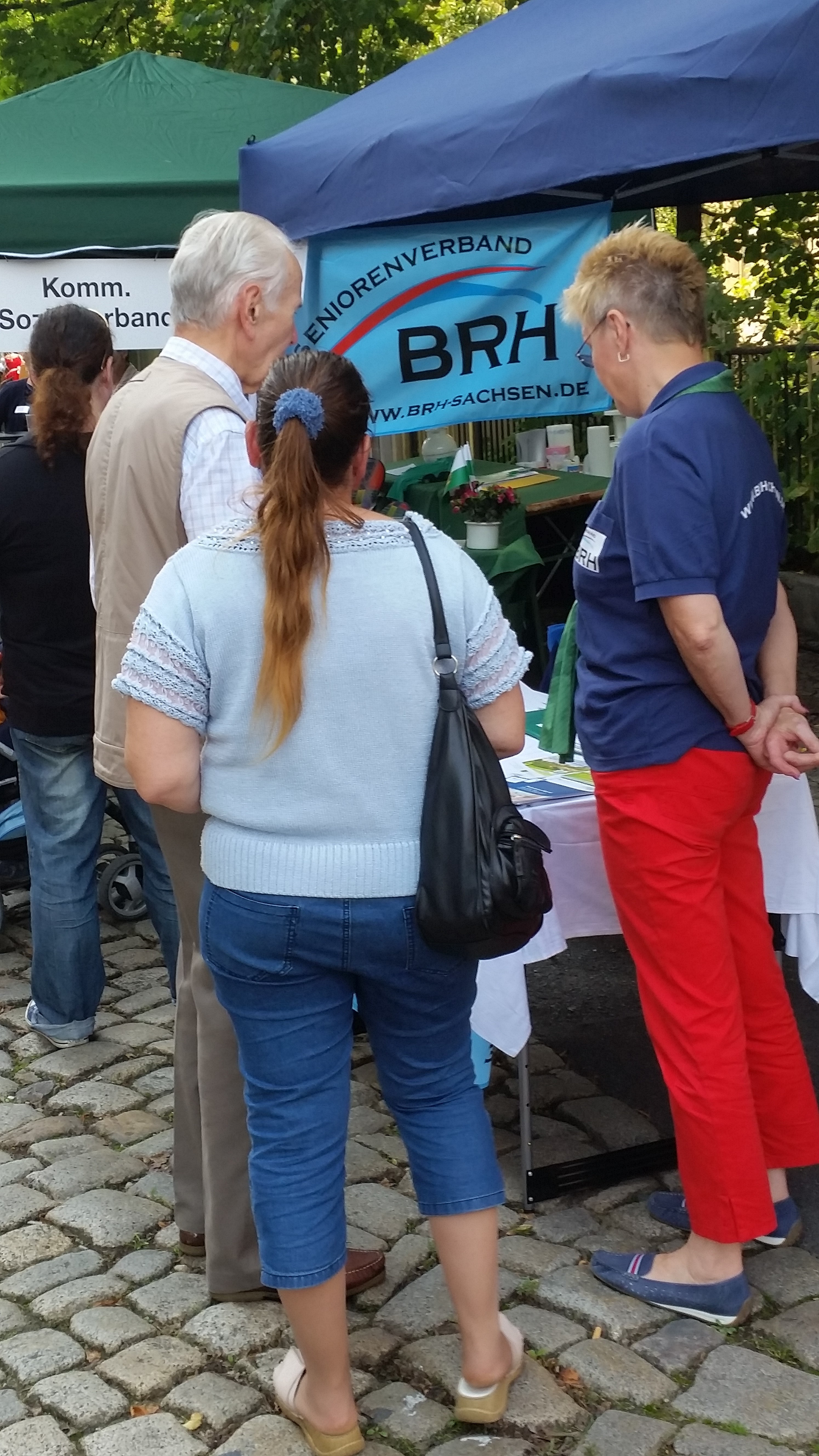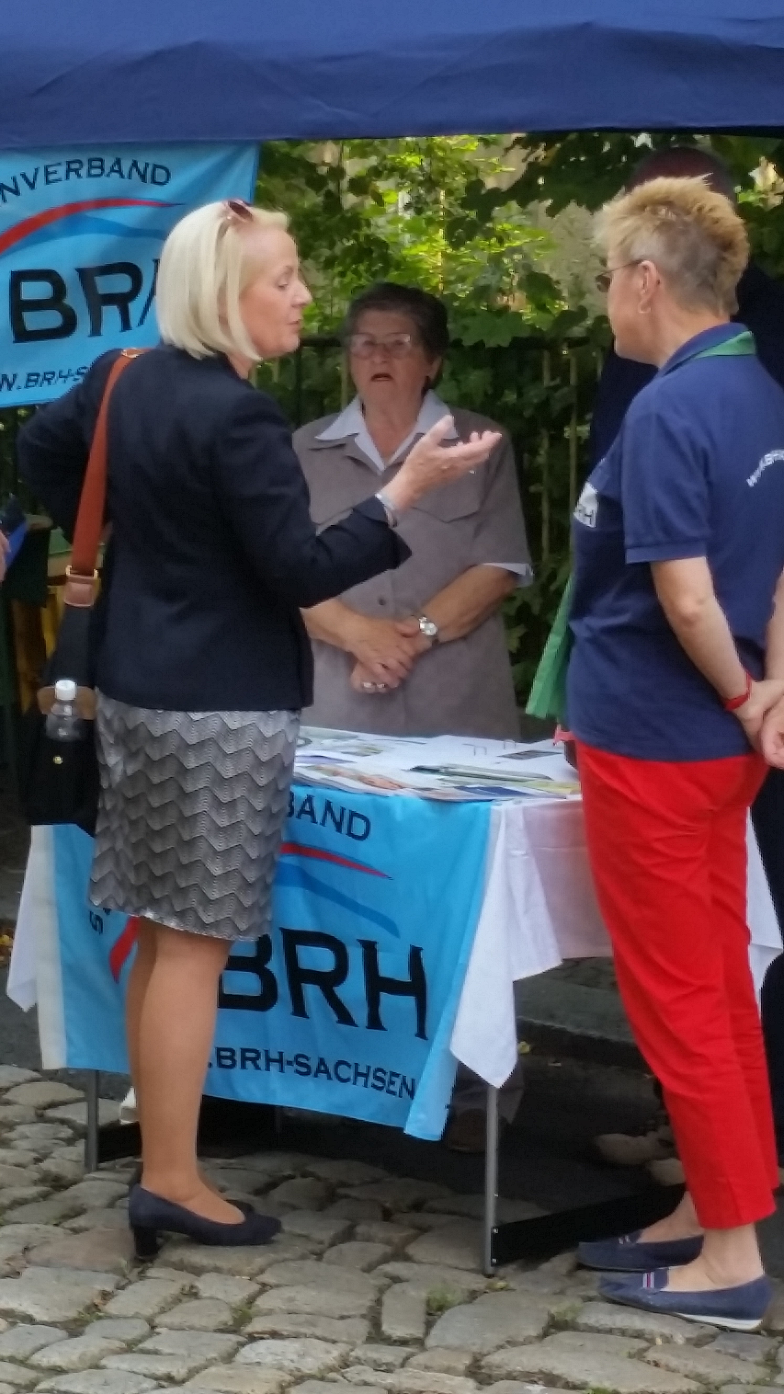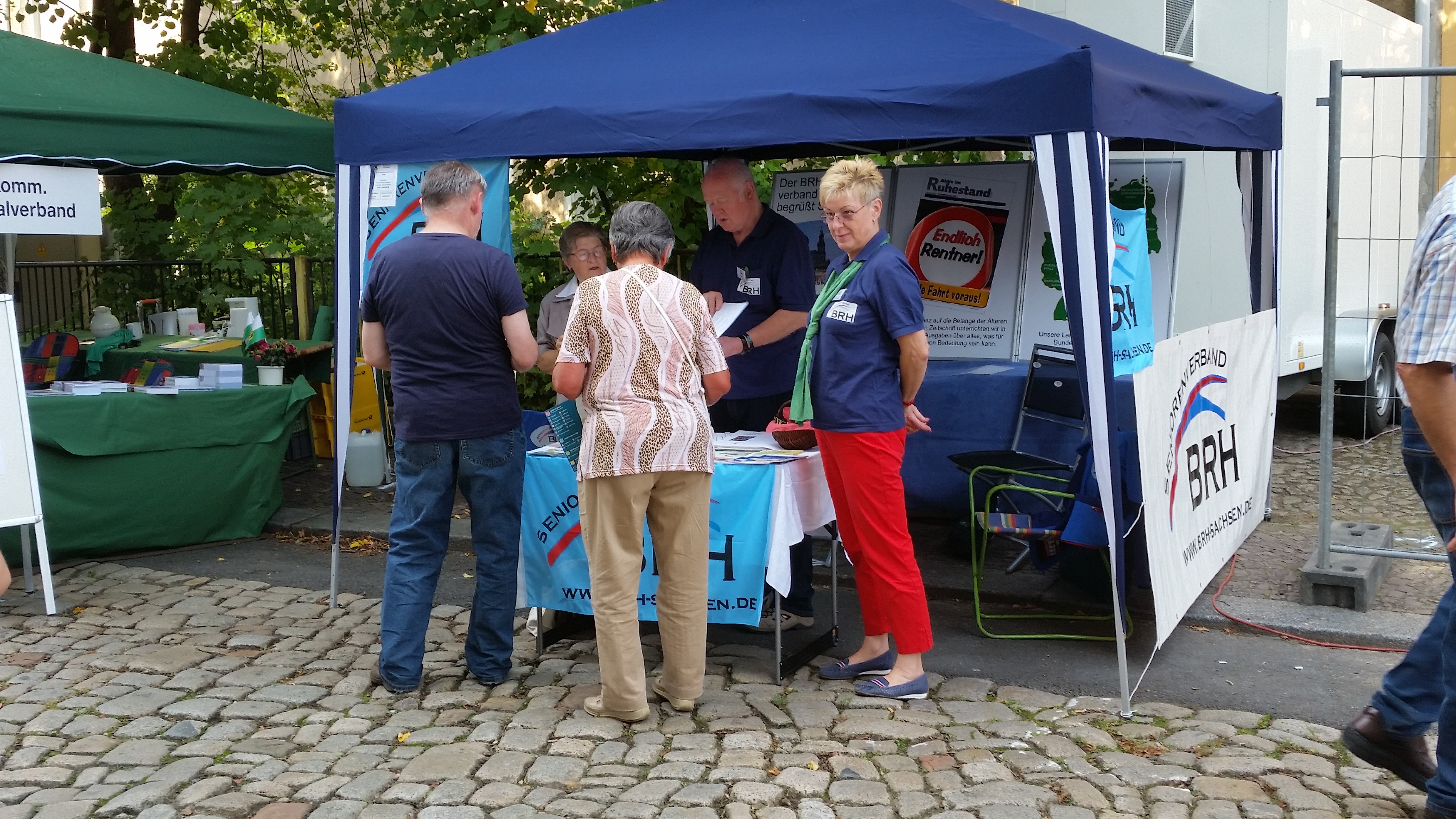 Der 23.Tag der Sachsen war für den BRH- Kreisverband Großenhain ein Höhepunkt im Veranstaltungsjahr des Vereins. Die Vorsitzende Waltraut Jäger und die Mitglieder des Geschäftsführenden Vorstandes begrüßten zahlreiche interessierte Seniorinnen und Senioren am Stand des BRH. Große Erwartungen setzten die Standbetreuer immer in den Besuch von Politikern. Zwar wurde in Sachsen gerade erst gewählt und die “alten“ Abgeordneten sind noch mit den politischen Aufgaben betraut, aber die „alten“ sind häufig auch die „neuen“ im Sächsischen Landtag. Wir konnten Gespräche führen mit der Sozialministerin Christine Clauß(CDU), mit Martin Dulig(SPD) und Horst Wehner (DIE LINKE). Unsere Themen sind bekannt und wir mahnen zu den noch offenen Fragen Stellung zu beziehen.